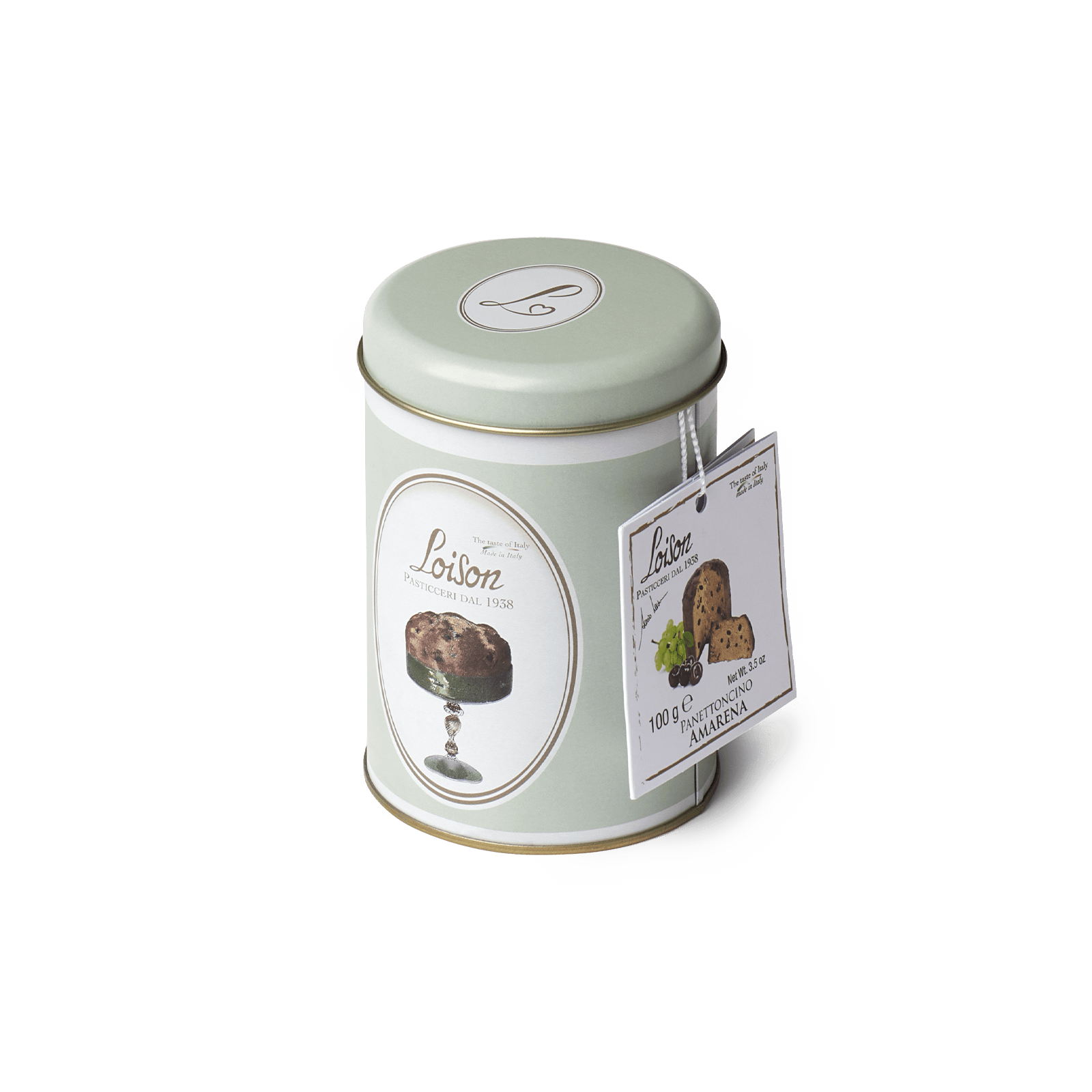 Mini panettone all’amarena u malom pakiranju od 100 g je slatko, mekano tijesto, dobiveno prirodnim dizanjem našeg kiselog tijesta, a rezultat je 72 sata strpljive izrade. Mini panettone s višnjama ima mekano i dobro izbalansirano tijesto, ukrašeno kandiranim višnjama i sultanijama. Mala slatkoća, ali bogata Loison kvalitetom.