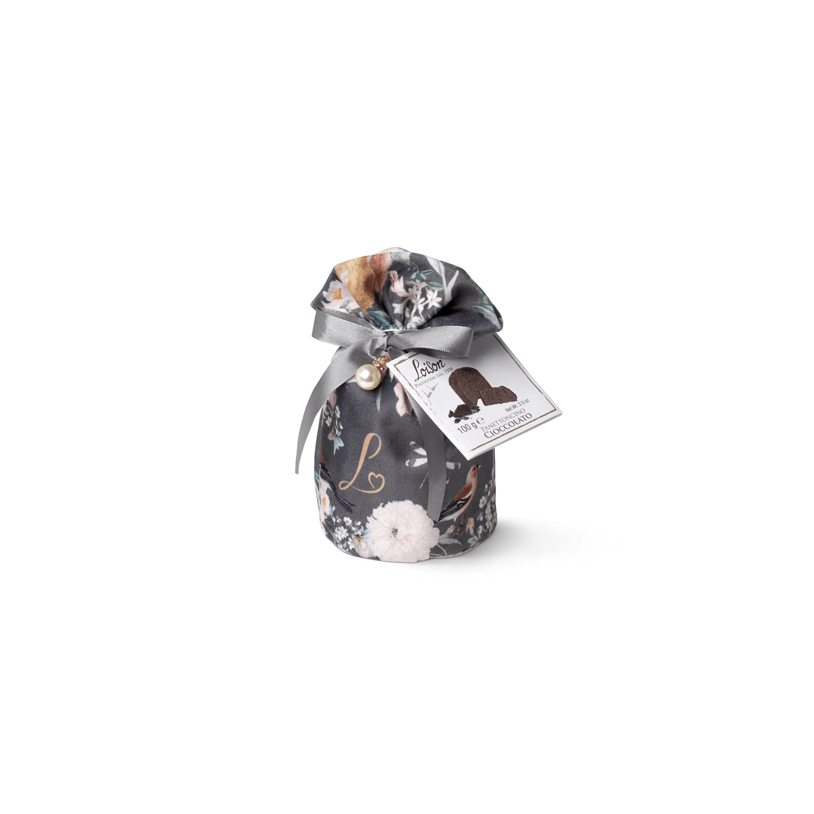 Mini čokoladni panettone u malom pakiranju od 100 g je slatko, mekano tijesto, dobiveno prirodnim dizanjem kiselog tijesta, a rezultat je 72 sata strpljivog rada. Mini čokoladni panettone ima mekano i dobro izbalansirano tijesto, obogaćeno kakaom i kapljicama tamne čokolade. Mala slatkoća, ali bogata Loison kvalitetom. Panettoncino je ručno pakiran u platnenu vrećicu koja prikazuje temu ovogodišnje kolekcije: prirodu.